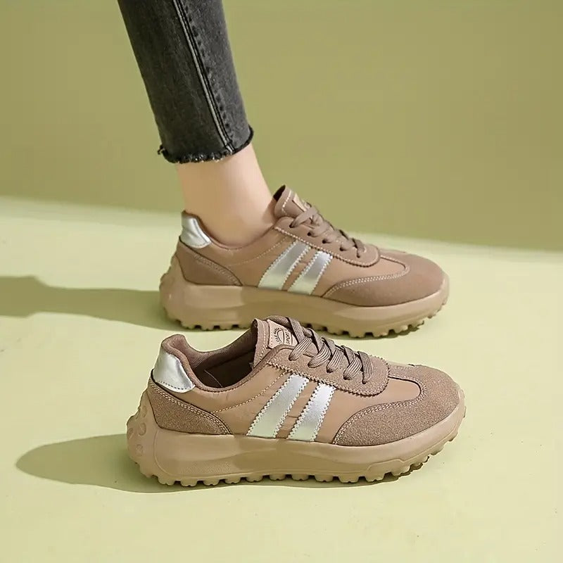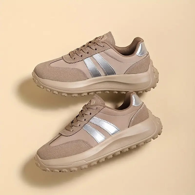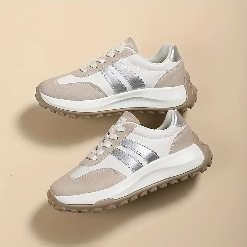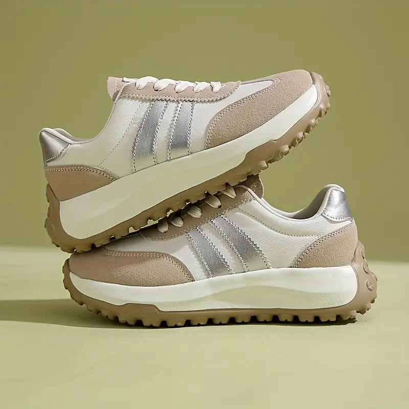 El contraste metálico en las bandas laterales añade un toque moderno y elegante, adaptándose tanto a looks casuales como deportivos.